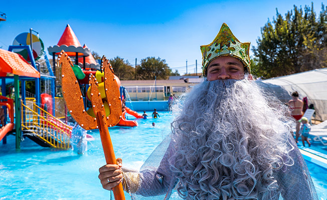 Яркий и насыщенный день, когда все гости «АзовЛенда» встречают владыку морей, играют для него, поют песни и отгадывают загадки. Море положительных эмоций, облака пушистой пены, яркие костюмы и искрящиеся водные брызги.